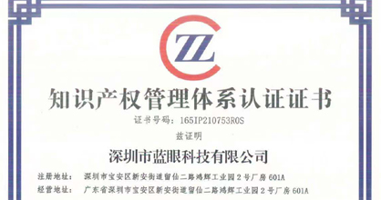 蓝眼科技获得国家知识产权管理体系现场认证证书